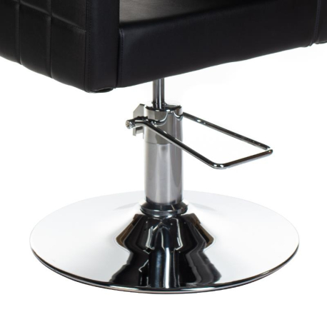 Der Friseurstuhl in Schwarz vereint zeitloses Design mit hochwertiger Verarbeitung. Die edle Steppung auf der Rückenlehne und Sitzfläche verleiht dem Stuhl eine luxuriöse Optik und sorgt gleichzeitig für zusätzlichen Sitzkomfort. Die klare Linienführung und die klassische schwarze Farbe passen perfekt in moderne Salons und Barbershops.